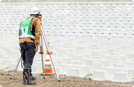 午前に引き続き、進捗状況や出来高、出来形、品質をチェック。施工の進捗に応じて工事写真を撮影したり、次の工程に向けた測量などの施工管理業務を行います。