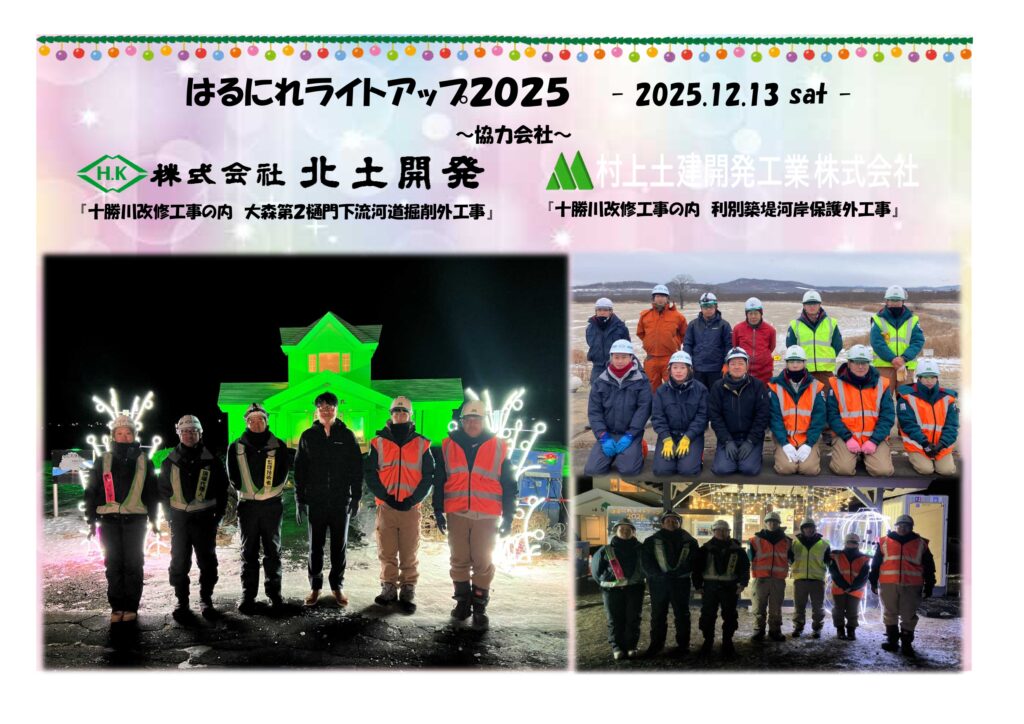 2025年12月13日(土)に豊頃町で開催されました「はるにれライトアップ2025」のイルミネーション装飾に参加しました。