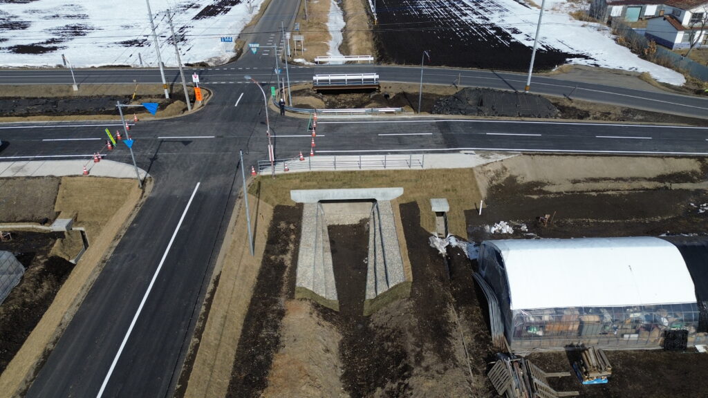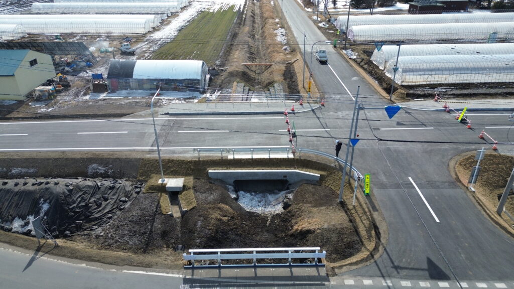 北進橋は橋長5.3m、昭和51年(1976年)の竣工から2025年現在49年が経過しています。本工事では新しい橋の新設を行います。