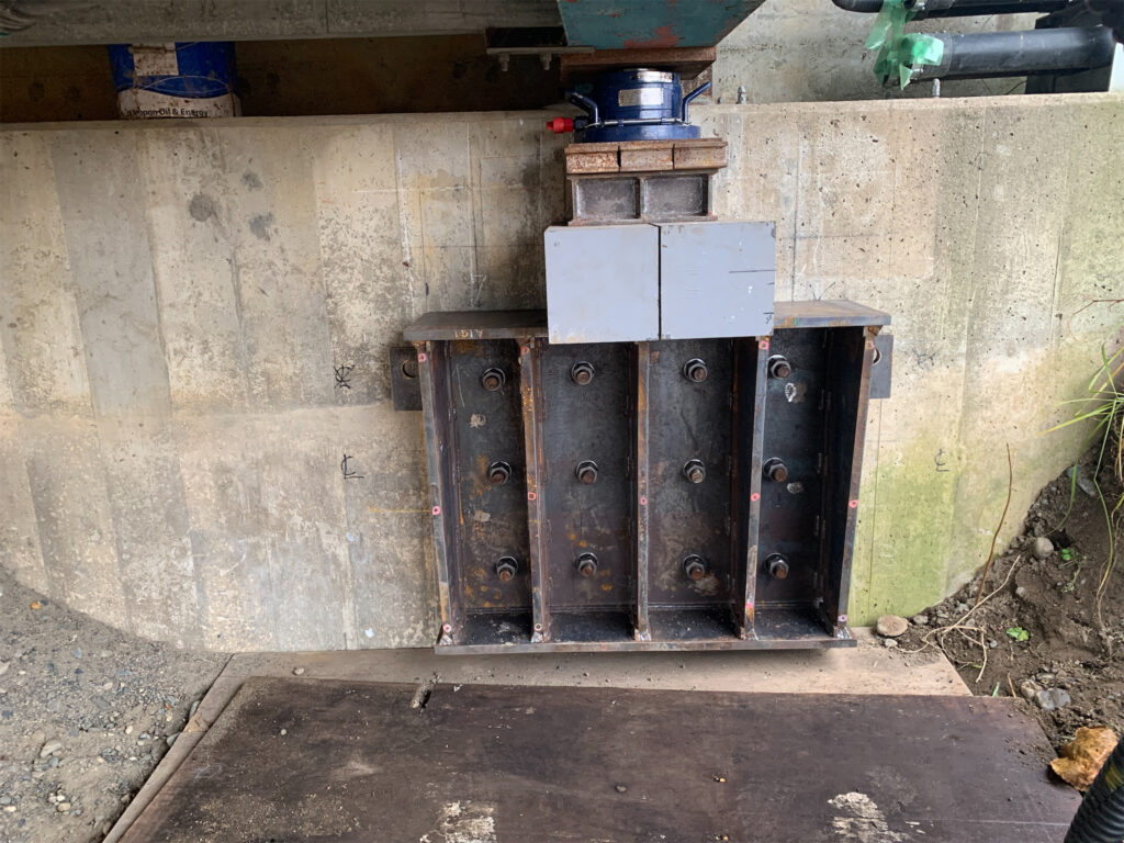 寺尾橋は昭和43年(1968年)の竣工から、2025年現在57年が経過しています。本工事は、支承(橋の上部と下部の間に設置する部材)の取り替えを行い延命することを目的としています。