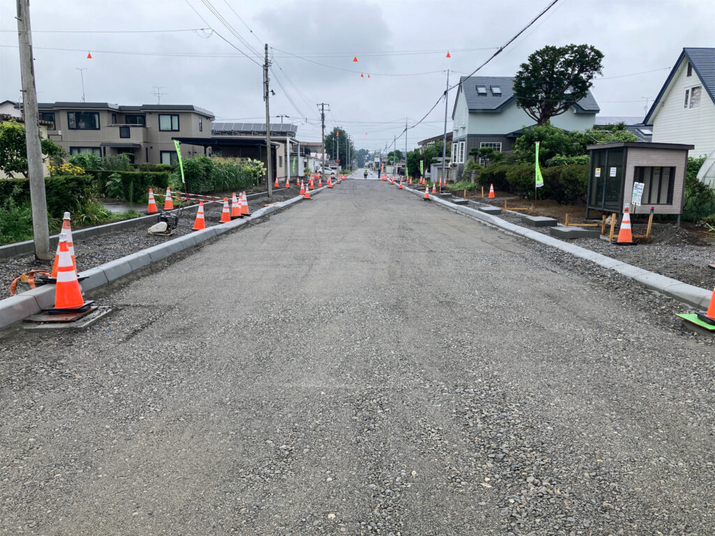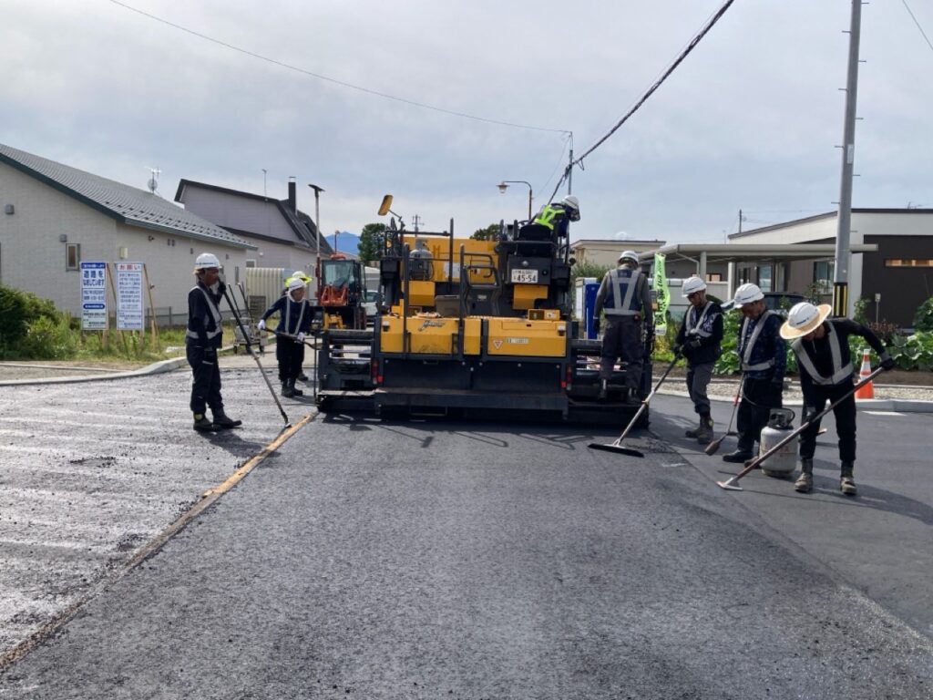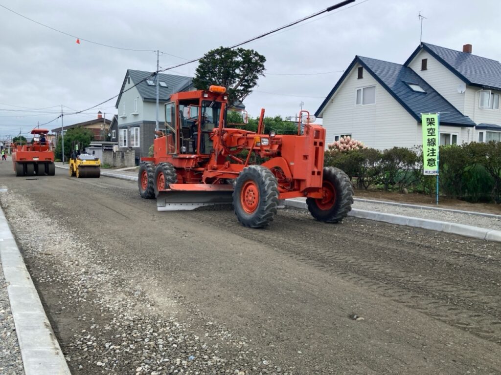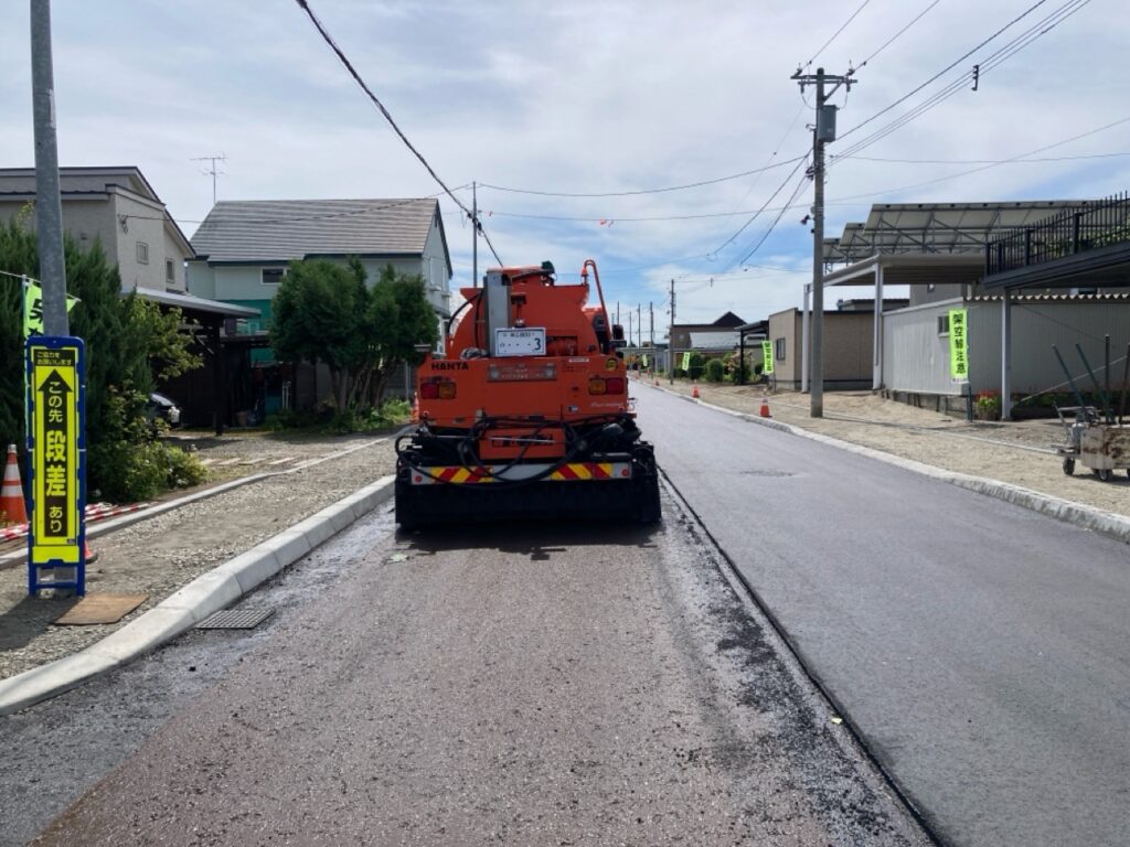 町道東5条南7丁目において経年劣化した舗装を直し、雨水の排水性を向上させ、新たに歩道を造成する工事です。
