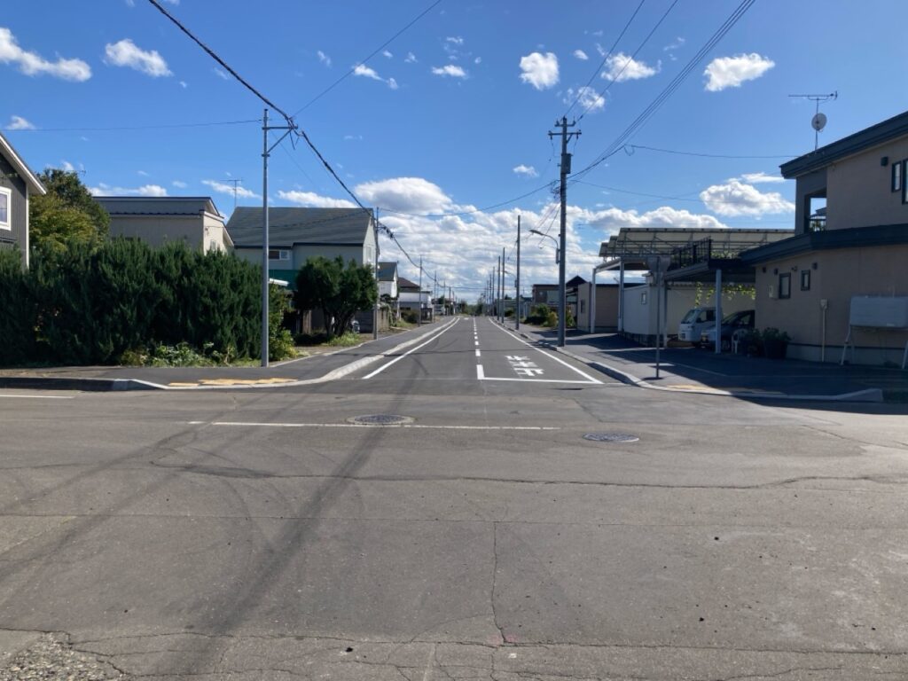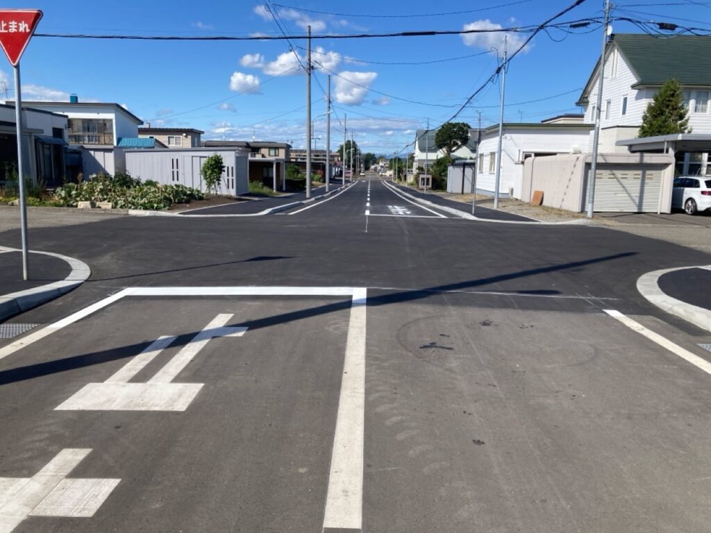 町道東5条南7丁目において経年劣化した舗装を直し、雨水の排水性を向上させ、新たに歩道を造成する工事です。